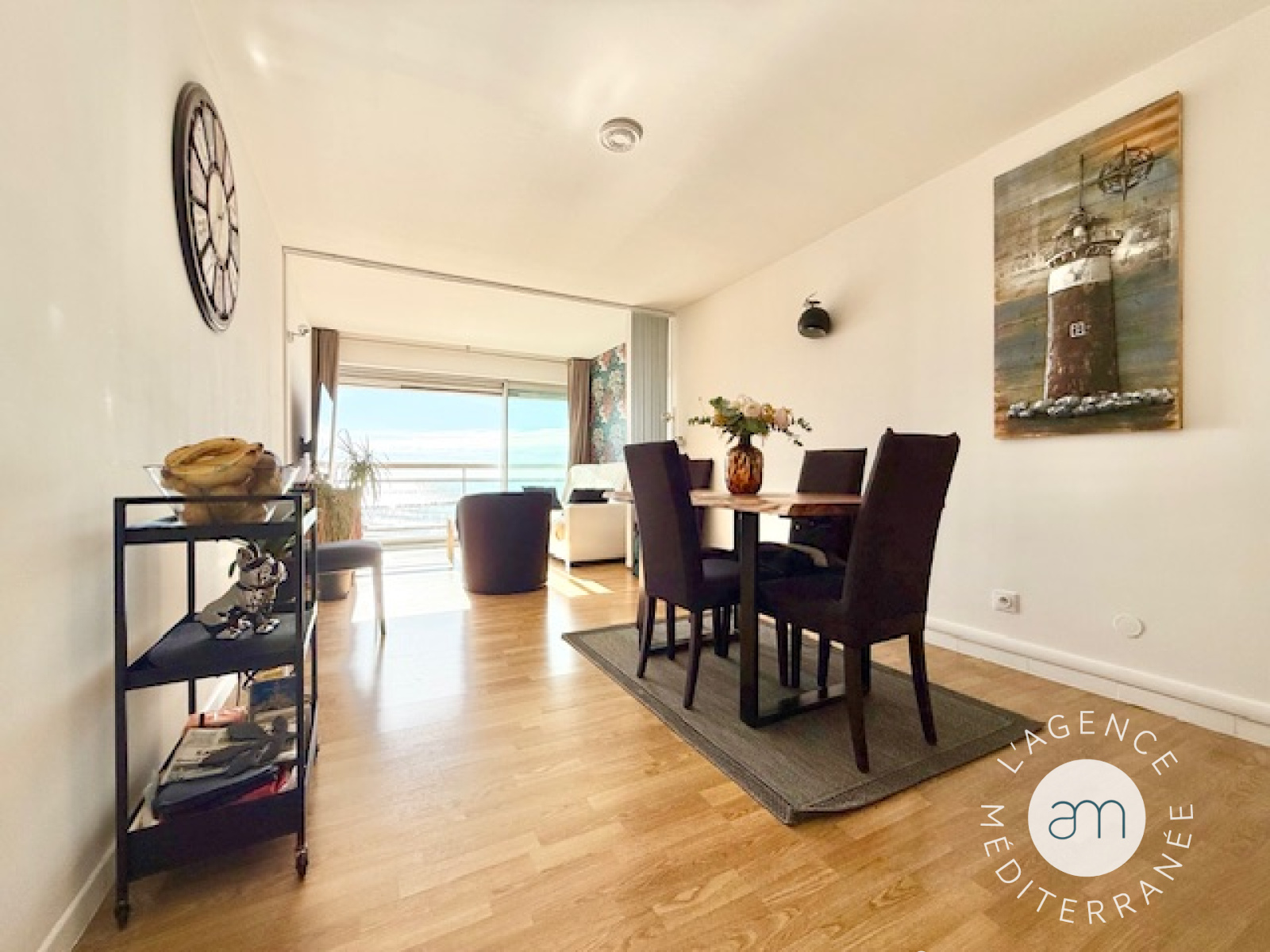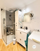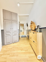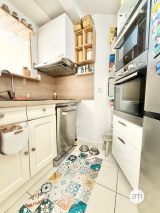 L’appartement se compose d’une chambre avec grand placard, d’un couloir desservant une salle d’eau, d’une cuisine fonctionnelle et d’un séjour lumineux agrandi sur la loggia, offrant une vue imprenable. La rénovation soignée met en valeur chaque espace pour un confort optimal.